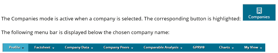 Key Capabilities: access to key capabilities (Company Data, Peers, Comp Tables, GPRV, Factsheet).