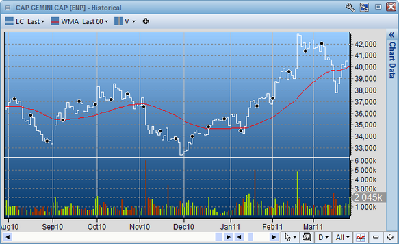 Charting The charting module in the terminal contains advanced functionality, but it is simple in use. The quickest way to open a chart from a selected instrument is by using the shortcuts Ctrl+I for intraday chart and Ctrl+H for historical chart, but it is of course also available from the right click menu (more shortcuts are available here). In addition to a comprehensive list of studies available, it is also possible to compare instruments against each other in the same chart. It is recommended that you read through the chapter about charting if you are interested in what this module has to offer.