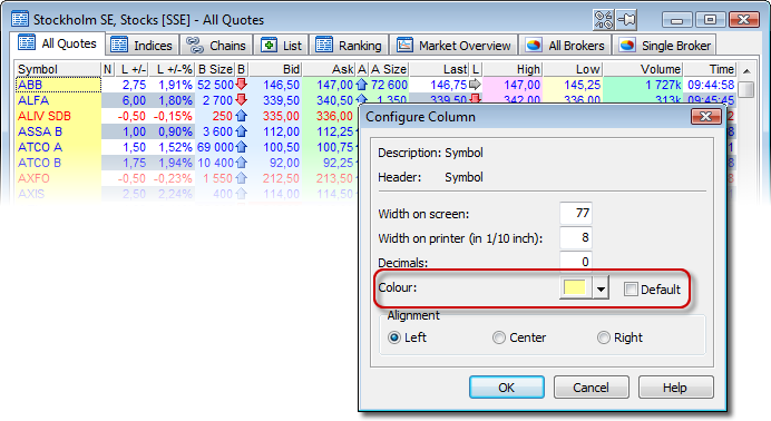Version 4.4 is an important update and includes a number of bug fixes and new features. It is recommended for all users. Consolidated Orderbook A new Consolidated Orderbook is now available for displaying instruments listed on more than one exchange in a consolidated view converted to the same currency. Below is an example with ABB listed on OMX Stockholm but in addition displaying ABB listings on SWX Europe, Chi-X, Xetra, Turquoise etc: