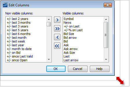Composite List view It is now also possible to edit the columns in the news window under the composite list. News icon hints The news icons hint window now gives the headline of the latest news item and the number of news items for the symbol (total items / read items):