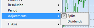The same options are also available in the standalone historical chart, in an Adjustments submenu: