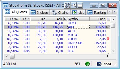 For instance, in this orderbook window we can see that we have an active buy order on ABB at 116,00. The background color used can be configured separately for buy and sell orders.