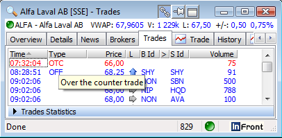 Trades tab improvements You can now select what trading day back in time you want to see trades for. If you have configured a filter on the Trades list, this filtering is kept in the workspace and if you change the symbol. Simplified historical news selection The toolbar is reduced to only one drop down menu, which selects the preferred period the news should be displayed for. By default, only the today’s news is displayed in the grid. By changing the selection, all available news items are displayed for that period. Show hints for trade type abbreviations There is now a mechanism to show longer names or explanations of trade type abbreviations in the trades list.